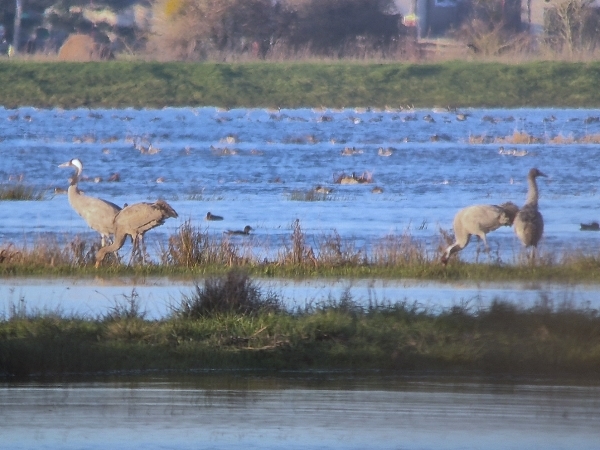 Today we went there to took for the 50+ flock of White-fronted Geese, we also looked tentatively for the Boneparte's Gull (becuase it probably is still in the area!). We found 5 Common Cranes and eventually we found the WF Geese but they were at such a distance we could hardley see them let alone count them. Other birds on show were thousands of ducks, several thousand perhaps. We added Pintail to our year list, also Common Kestrel and a Marsh Harrier appeared.