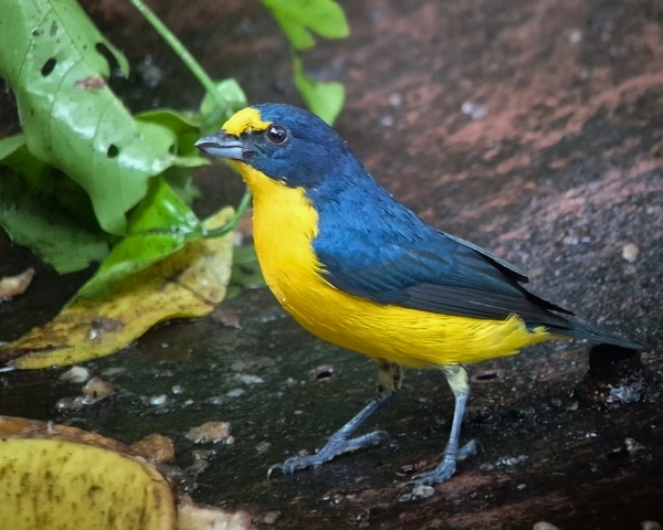 The Golden-hooded Tanager was new as well as Piratic Flycatcher, Yellow-bellied Elaenia, White-collared Manakin, Black-cowled Oriole and our first Gray-headed Chachalacas. During breakfast we watched a Yellow-throated Euphonia with other species visiting the bird table which was laden with bananas.