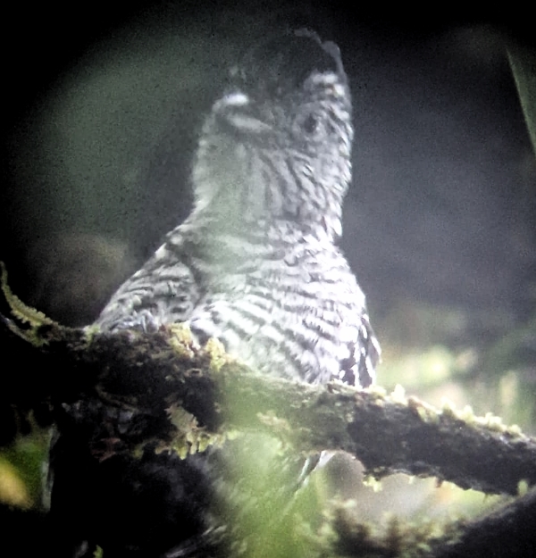 Barred Antshrike, in the thickest part of the a tree right above us.