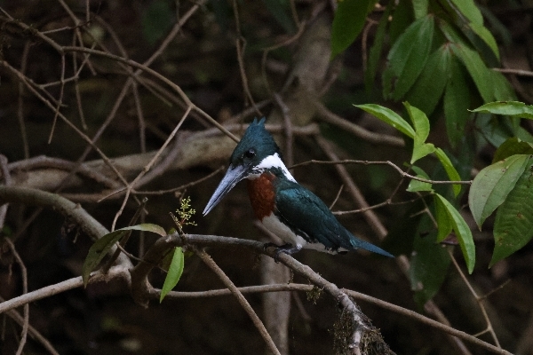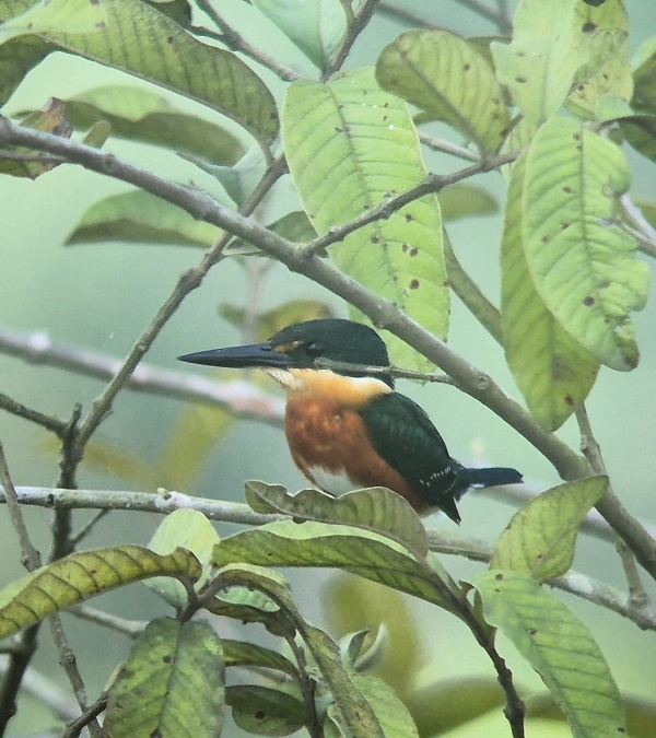 He had found a Green-and-Rufous Kingfisher, wowza! That was a very rare sighting and even the captain of the boat got excited, we all saw it perched in the gloomy bushes and had flight views of it as it moved from perch to perch. Well what away to finish the trip!!