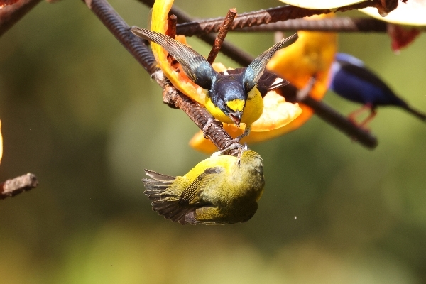 a bit of a scuffle between two Yellow-throated Euphonias - captured by Kevin Jones