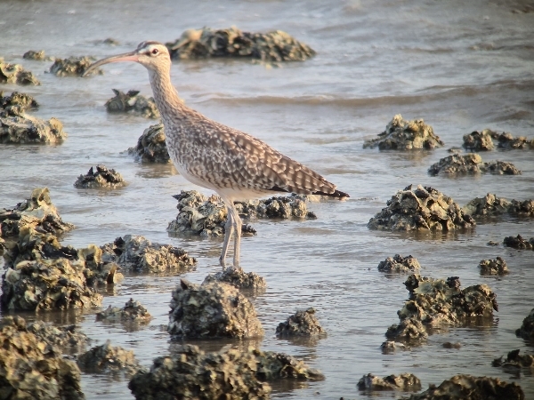 Tthe tide was ebbing and so was the number of birds on the jetty, we saw only two species, Royal Tern and Laughing Gull. Scanning the shoreline as the tide dropped we found a few waders. Hudsonian Whimbrel, Ruddy Turnstone, Black-bellied Plover and some distant Willets. We did see a flock of peeps but they were too far away to identify them.