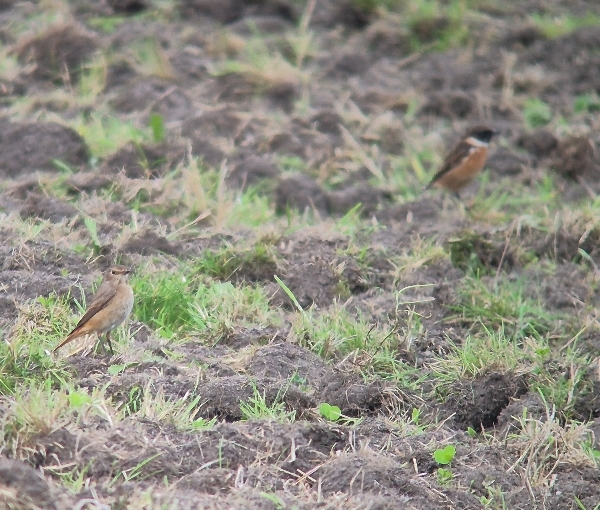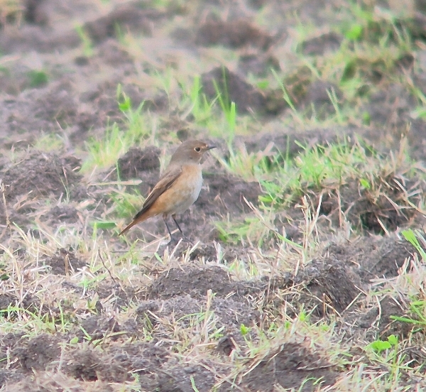 A Spotted Flycatcher was found along a sheltered fence line in the next field and two recently ploughed fields produced a good number of birds. Up to five Common Redstarts fed in the ploughed earth, dashing from the hedgerow onto the ground. We saw at least three of them and another Whinchat was noted. Lots of Song Thrushes, Blackbirds, Meadow Pipits and Robins were also feeding there.