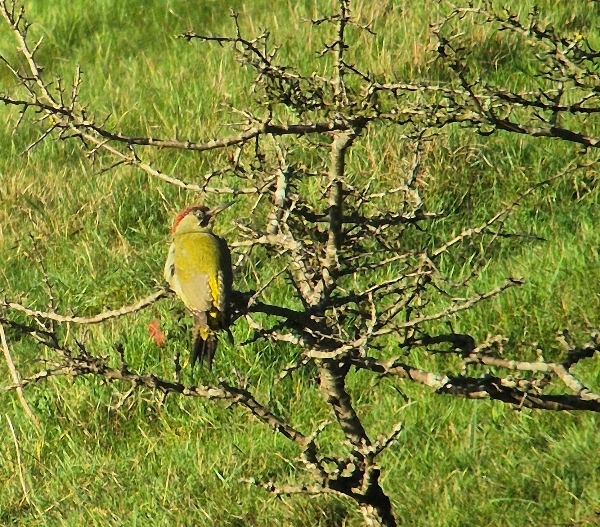 A pair of Green Woodpeckers were the first birds I encountered, they dash about ahead of me and I managed a couple of distant shots of the female.
