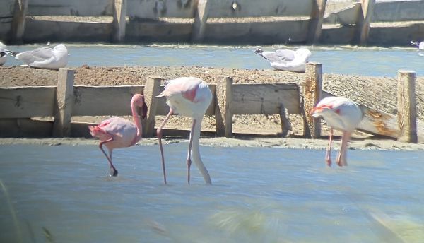 Many waders were out there, we added Curlew Sandpiper (dozens of them in brick-red summer plumage), also Dunlin and Little Stints. Also present were Greater Flamingo, Common Shelduck, Wood Sandpiper, Avocet, Black-winged Stilts and dozens of YL Gulls.