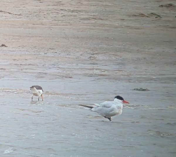 Caspian Tern with a Eurasian Oystercatcher