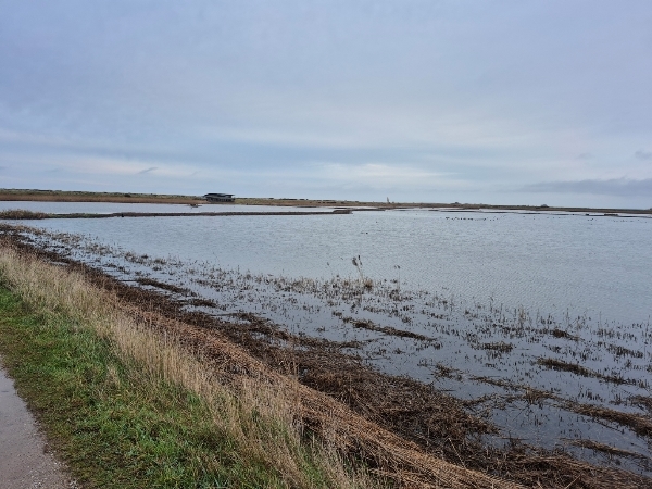 We knew that the rasin was on its way and that we had only the morning to find a few species. We both wanted to visit Titchwell again and to walk down to the beach to scan the shoreline and the sea and so that is what we did first thing this morning.