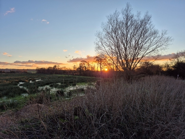 We then drove back to the Levels, we parked in the small car park at Catcott Lows Nature Reserve and enjoyed great views of both Fieldfares and Redwings. A Kingfisher delighted the group, we watched Chiffchaffs in the bushes and Common Snipe flying around. The marsh at Catcott was still mainly frozen, we had hoped to see a Glossy Ibis but it didn't turned up. We waited around for 1 1/2 hours enjoying the beautiful sunset the and frequent bird sightings.