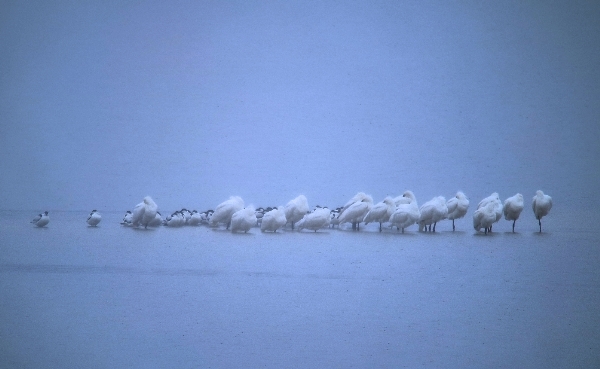Once we had views of the vast Poole Harbour we noticed that it was high tide time, so most of the birds were huddled together in the reeds and along any piece of dry shoreline that they could fit on.