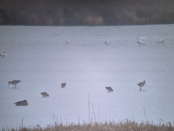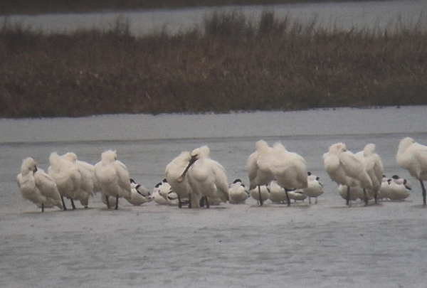 Wigeon, Shoveler, Mallard and Gadwall joined more Black-tailed Godwits as we gained a little height when viewing from the raised hide. We had better views of the Spoonbills but they refused to wake up from their midday slumber.