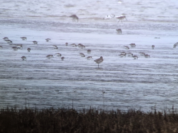 Dunlin, a single Black-tailed Godwit and a couple of Curlews taken from the hide at Middlebere
