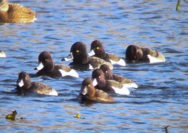 can you spot the Ring-necked Duck here amongst the Tufted Ducks? Bill pattern, head shape and flank colouring are clues!