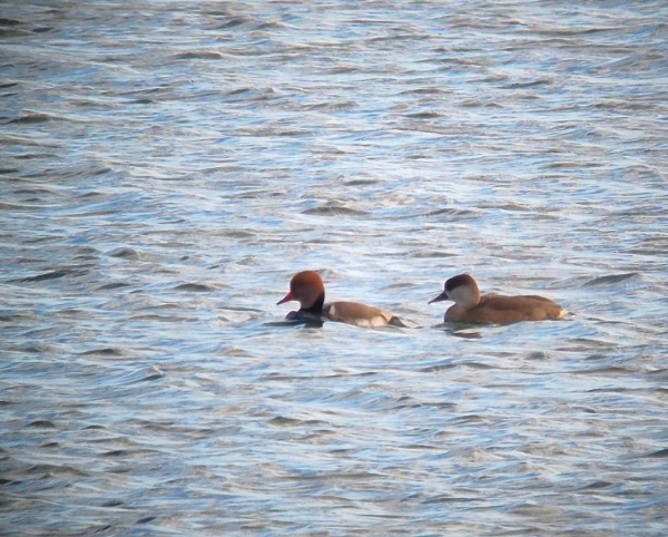 My god was it windy at Cheddar, we parked near the Cheddar Tower and walked around the raised embankment of the Reservoir where we thought the Scaup had been seen last. It very hard to keep upright let alone keep a scope still enough to use. We found about 1,000 Common Coots, some Common Pochard, Tufted Ducks and to our great surprise there were at least 6 Red-crested Pochard. Although Cheddar reservoir has been a regular wintering spot for the Red-crested Pochards, they had not been present for a couple of years, so it was nice to see them back.