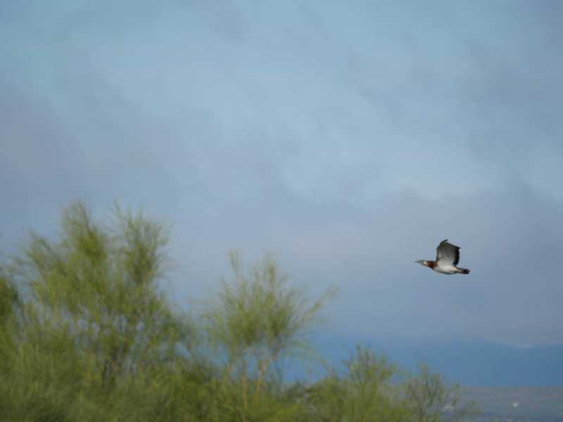 On the brow of a hill a couple of hundred meters further along the road we struck gold. After parking we walked to another raised embankment just as several Pin-tailed Sandgrouse flew over us, then some more did the same and then more!! Almost immediately afterwards three female Great Bustards and a single male flew towards us, they came fairly close as they flew over the road. Wowza! That was good.