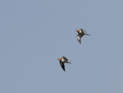 just two of over 30 Pin-tailed Sandgrouse that flew over us, another picture taken by Xanthe Walker