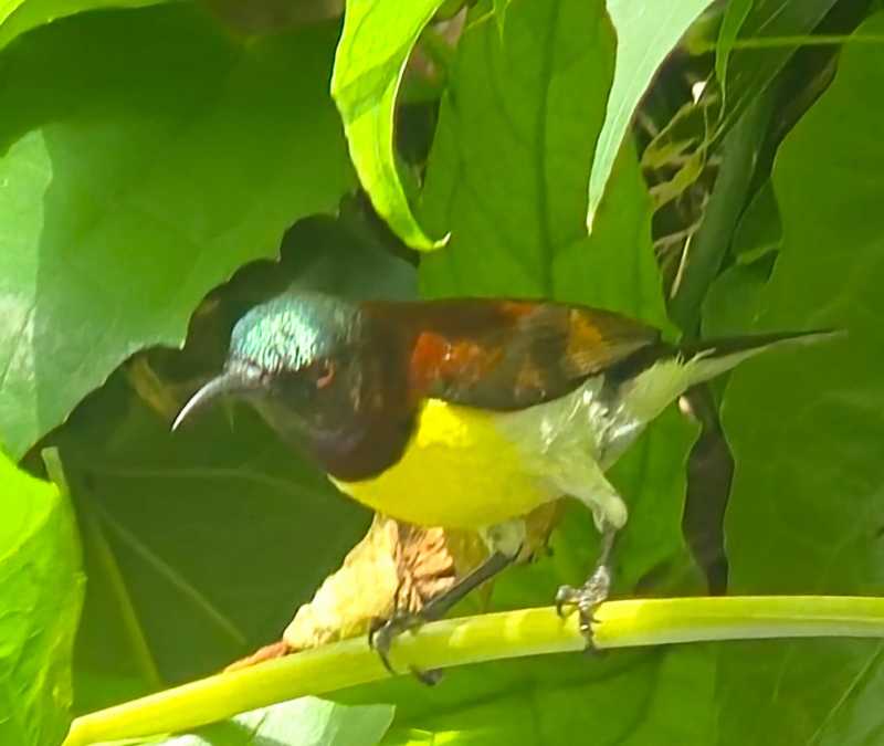 a male Purple-rumped Sunbird seen from the hotel balcony in Kandy