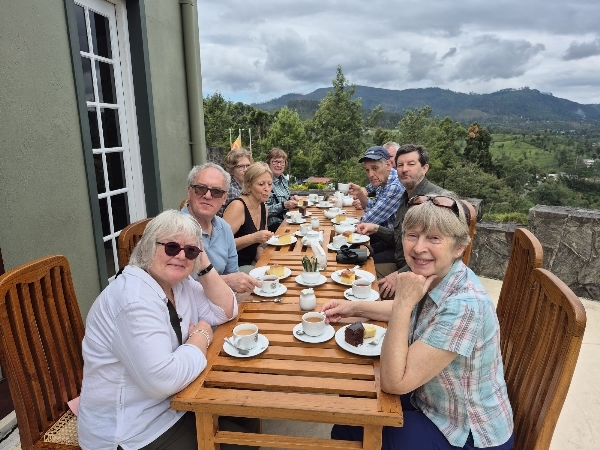 At 8:45am we set off for the mountains, a 3 hour journey through some fascinating terrain and sculpchered landscapes, shaped by the uniform rows and terraces of the tea plantation. We stopped around 11am for a cuppa, we sat on the terrace drinking tea and eating cake. The views over the valley were stunning, we overlooked Devon Falls and we watched quite a few birds too.