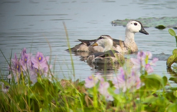 The sun was shining we had a lovely cooling breeze in our faces and the light was exquisite. We saw dozens of species but only one or two were new for our list. It was Robert who found the Cotton Pygmy-Goose sometimes called the Cotton Teal. A pair were feeding very close to the shore and gave us superb views. At one stage the male was displaying, showing off his irridescent green wing-feathers to his potential mate.