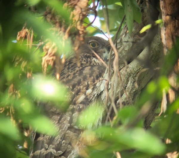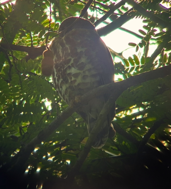 The last owl of the morning was found in a side track between house, it also sat high up and with the sun behind it. It wasn't easy to see. We got the bird in the scope and everyone got to see, the Brown Hawk-Owl was our fourth owl of the day.