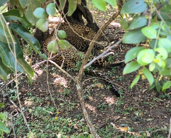 Great excitement ensused when a report came through of a Leopard sighting, we dashed off and drove for 10 minutes. A narrow track was clogged with vehicles, but only about 6 of them. Soon we were right next to a sleeping Leopard, it was just 3 or 4 meters from the side of the track, fast asleep. It was was huge, a male, and so was the excitement buzzing around, what a beast.