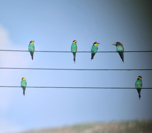 European Bee-eaters roam the island in gangs and establish nesting colonies, they breed in the banks of the rivers