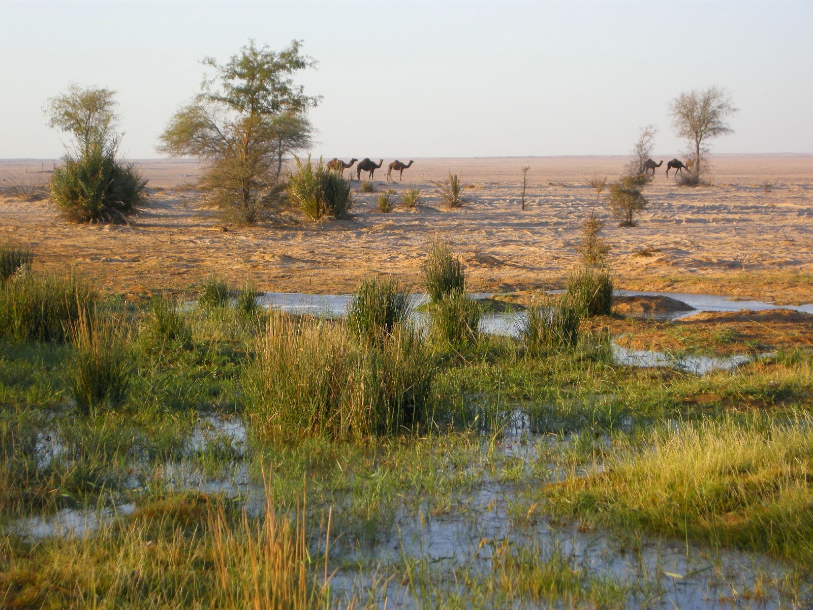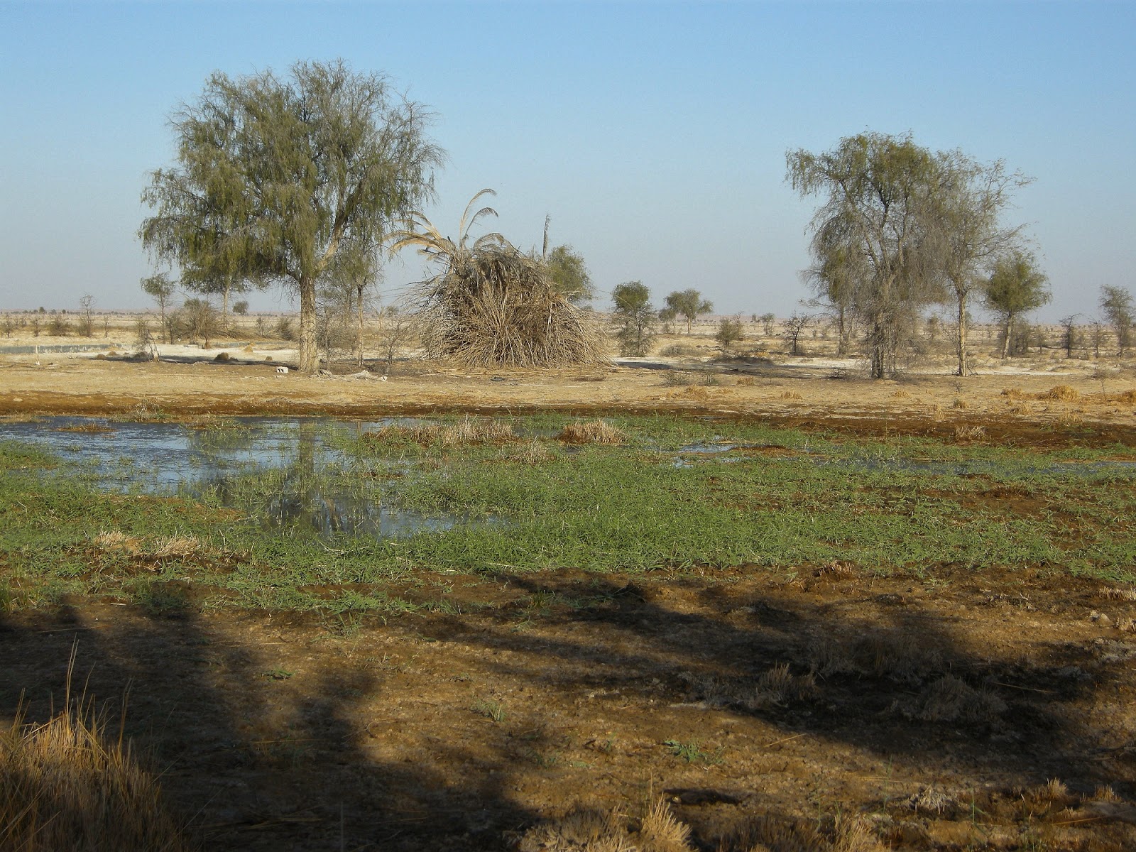 For our afternoon excursion we drove into the desert to visit an oasis where our most wanted bird, the Grey Hypocolius is sometimes found. This was an oasis-recce trip because intended to re-visit the area tomorrow. After about 45 minutes driving along desert tracks we arrived at the oasis which consisted of a small wetlands with open pools and reedy areas. Quite a few trees stretched for miles around they were thinly spread and were mainly acacias.