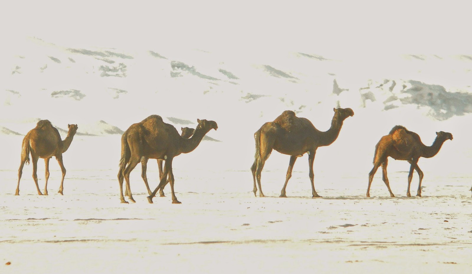 many, seemingly wild, camels roamed the desert |
